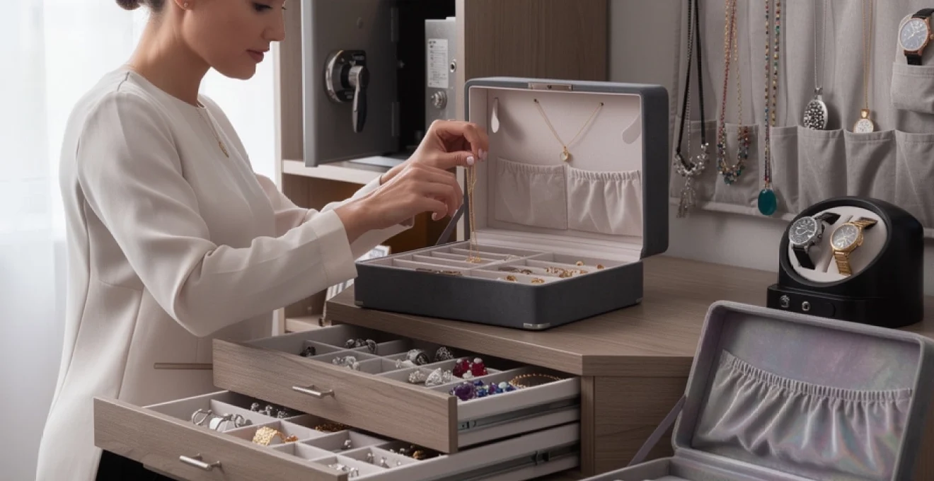 When evaluating a jewellery box, consider the internal layout as carefully as the exterior aesthetic. Does it have long compartments for chains, cushioned sections for rings, and deeper wells for chunky bracelets or bangles? Are there separate sections where you can divide fine jewellery from fashion pieces and organise by metal type? A well-designed jewellery box should support these best practices so that you are not forced to pile items together. If your current box is hard-lined or non-padded, you can upgrade its protective capabilities by adding small anti-tarnish pouches and adhesive felt or velvet inserts to cushion each space.